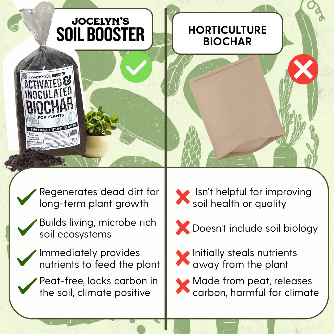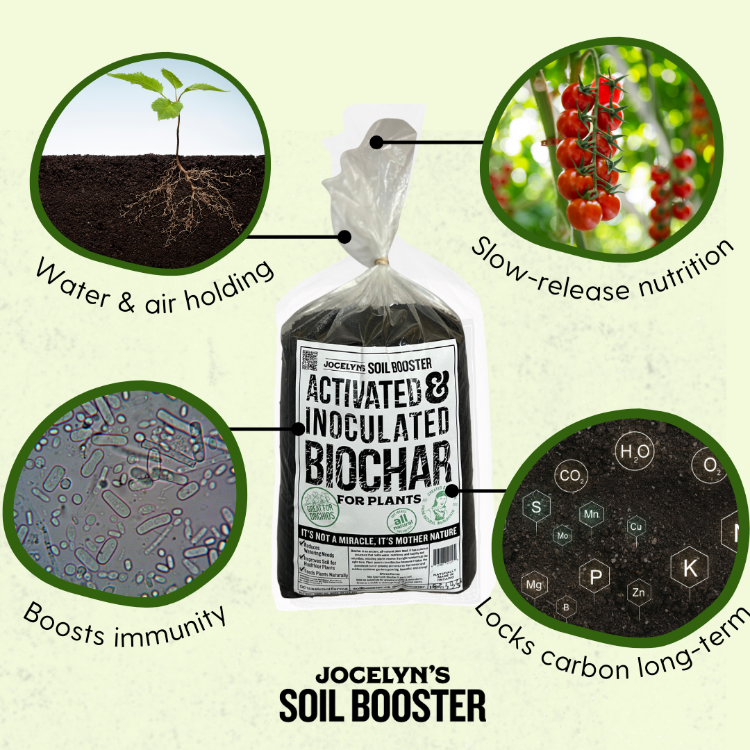 Biochar is an all-natural plant food that instantly feeds and benefits your plants. Mixed with my Worm Manure, my Biochar is activated (filled with nutrients) and inoculated (loaded with healthy microbes).